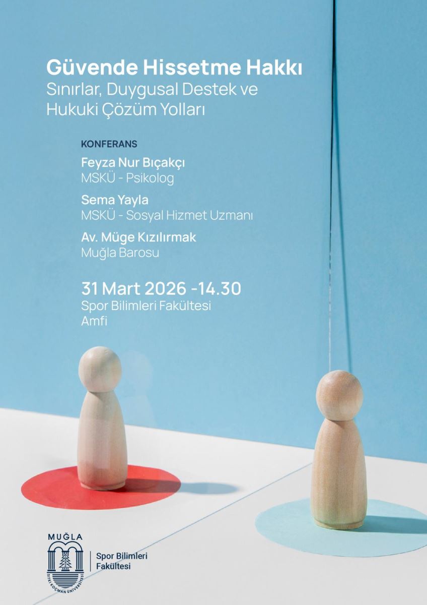 Güvende Hissetme Hakkı: Sınırlar, Duygusal Destek ve Hukuki Çözüm Yolları Bölümümüz ve Öğrenci Hakları Birimi koordinatörlüğünde, Fakültemiz kadın öğrencilere yönelik "Güvende Hissetme Hakkı: Sınırlar, Duygusal Destek ve Hukuki Çözüm Yolları" adlı konferans 31 Mart 2026 tarihinde Fakültemizdeyapılacaktır. Son Güncelleme : 01.04.2026 11:47 Okunma Sayısı : 3